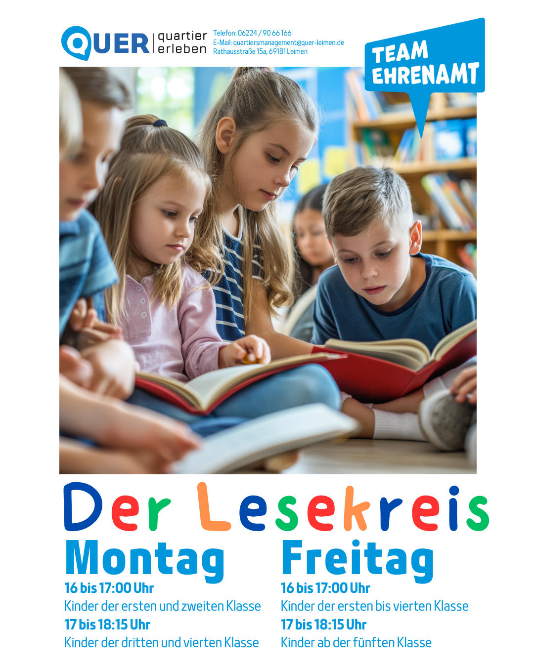 Im QUER in Leimen gibt es ein regelmäßiges Angebot für Kinder, die ihre Lesefähigkeiten verbessern möchten. Im Lesekreis üben die Kinder in einer unterstützenden und ruhigen Atmosphäre das Lesen und gewinnen dabei mehr Sicherheit und Selbstvertrauen.