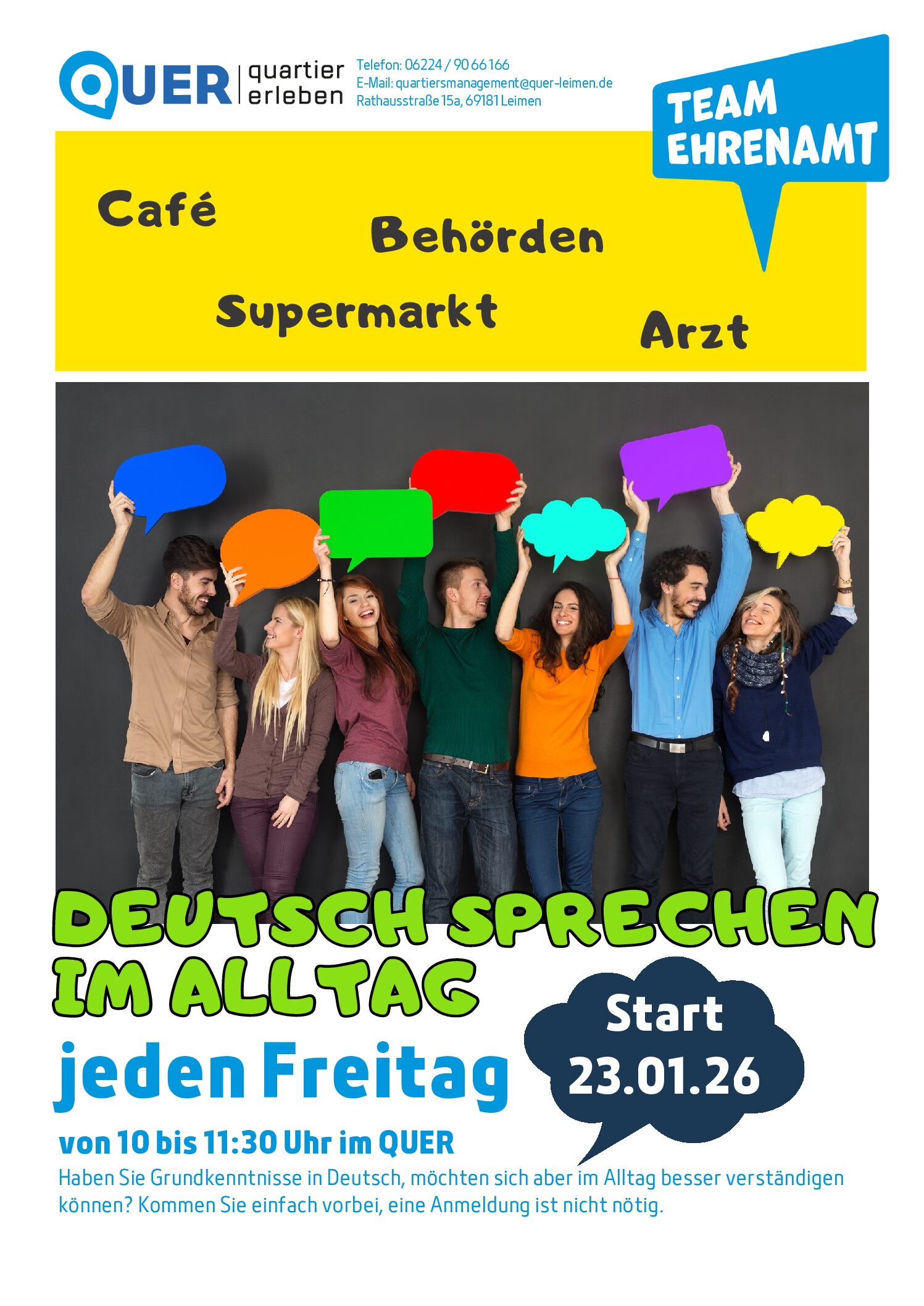 Quartiersbüro Rathausstraße 15a, Leimen, DeutschlandIm QUER in Leimen gibt es ein regelmäßiges Angebot für Kinder, die ihre Lesefähigkeit verbessern wollen. Der Lesekreis bietet eine unterstützende Umgebung, in der die Kinder gezielt üben und sicherer im Lesen werden können. Montag 16:00–17:00 Uhr: Kinder der ersten und zweiten Klasse 17:00–18:15 Uhr: Kinder der dritten und vierten Klasse Ort: QUER, Rathausstraße 15a, […]